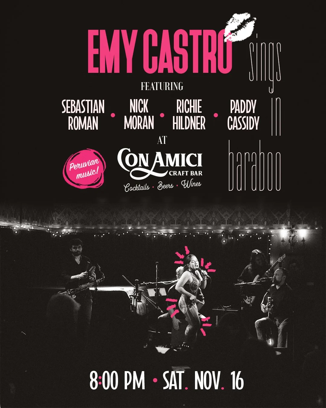 Formed by Emy Castro, we perform traditional peruvian repertoire including styles such as valses, festejos, landós, tonderos and panalivios. We also occasionally perform boleros. In this group, I play saxophone as well as minor percussion.
