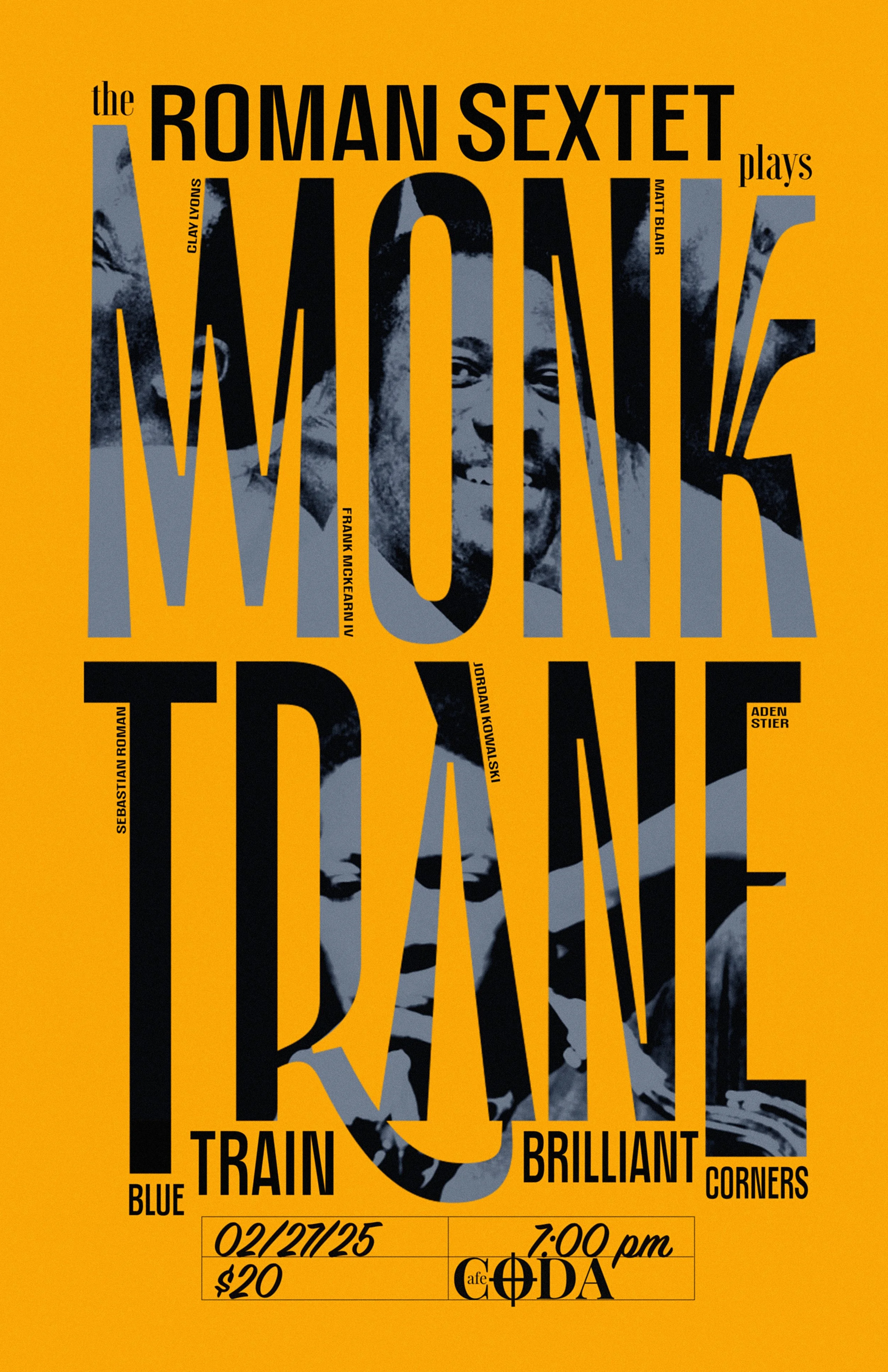 This group is dedicated to performing classic jazz albums from the 50’s and 60’s. We feature Clay Lyons on alto sax, Matt Blair on piano, Aden Stier on bass, Frank McKearn IV on EVI, and Jordan Kowalski on drums.